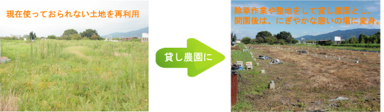 ご提供いただきました土地は、貸し農園として使用させて頂きます。